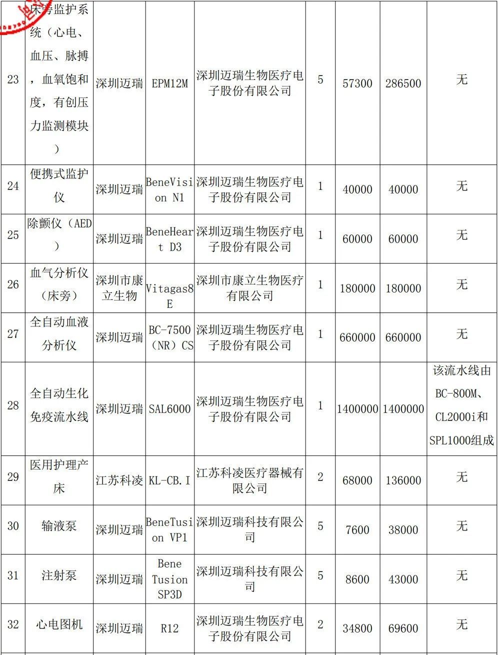 价格表出炉!医院采购设备,全部国产