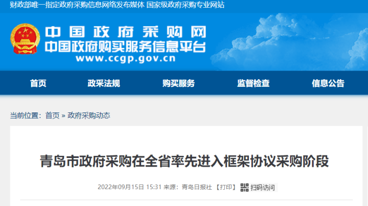 目前,除宁夏,安徽、海南、重庆等多省市也已相继跟进。近日,青岛市政府正式宣布:全省率先进入框架协议采购阶段。