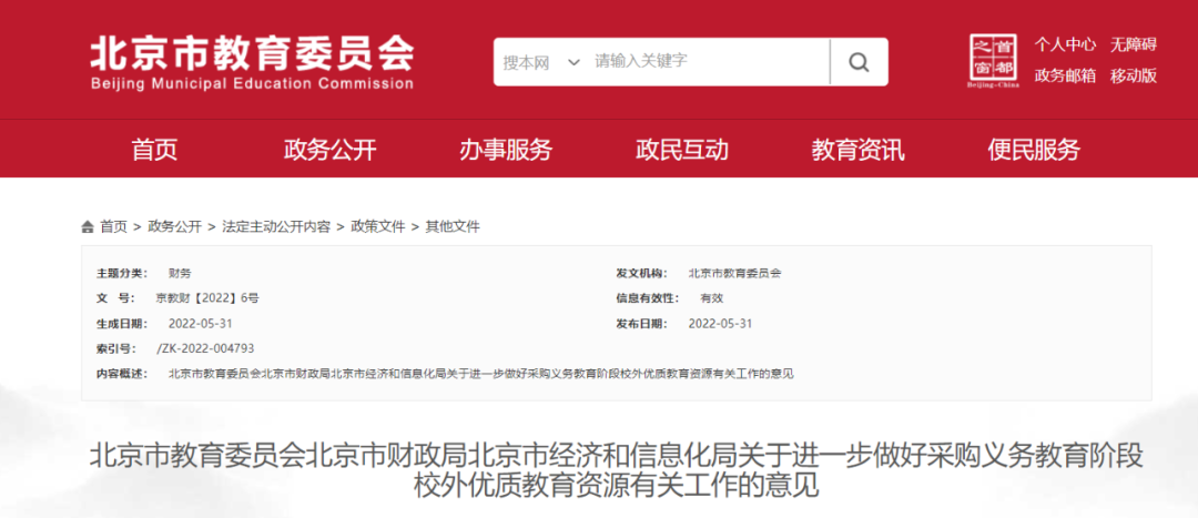 可购买数字教学平台!北京:支持义务教育阶段采购三大类校外优质教育资源