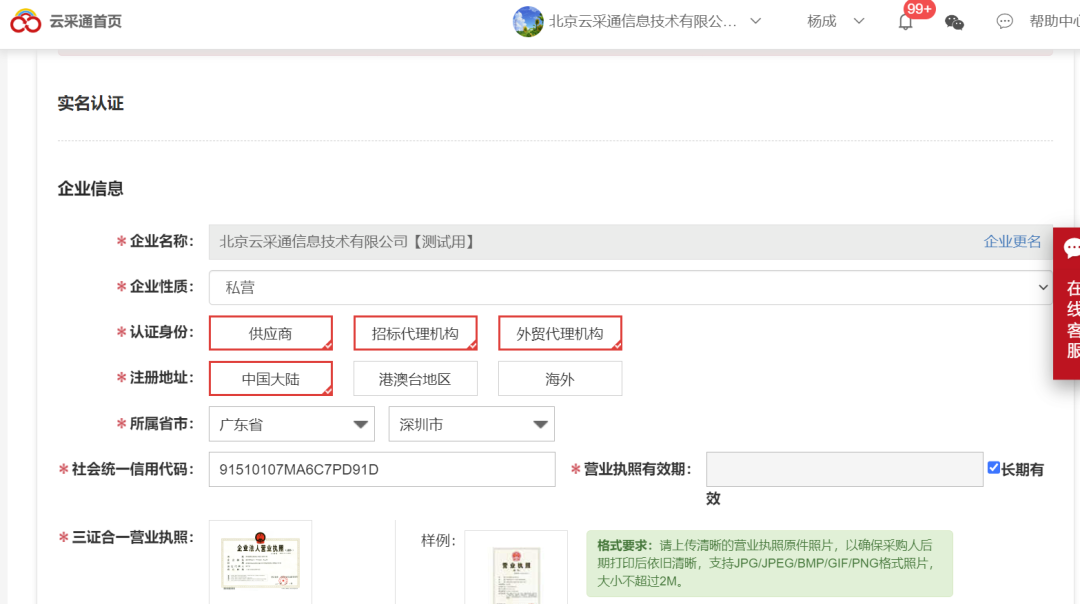 通过接口获取的供应商,如确定为中标供应商,则在确定成交结果时,将其推送至高校采购联盟供应商共享平台。由供应商在联盟平台完善实名认证的其他信息(图9-10),减少人工录入,保证基础数据的准确性和可靠性。可靠的、完整的供应商认证信息是采购合同签订的前提。所有的采购项目信息,包括参与和成交供应商信息,都会同步共享在“交我办”采购合同审核和合同电子签章的应用中。同时,学校供应商管理所产生的可靠数据也会在高校采购联盟中进行共享。