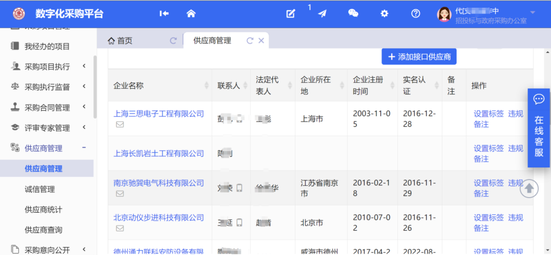 全方位、精细化的供应商信息管理是高质量政府采购追求的目标,上海交通大学“数字化采购平台”通过与教育部“高校数据共享应用平台”对接,利用“市场监管总局_企业基本信息查询接口”等获取权威供应商基本信息,实现对供应商基础信息的动态管理。同时与清华大学、浙江大学等100多所高校共建采购联盟,共享供应商数据和采购信息;通过云端部署,实现供应商注册与实名认证、采购信息推送、数字签名等一体化应用,打造“业务公开、流程科学、规范高效、全程在案、永久追溯”的高校政府采购营商环境。截至目前,平台供应商保有量超过10万家,实名认证比例接近98%。