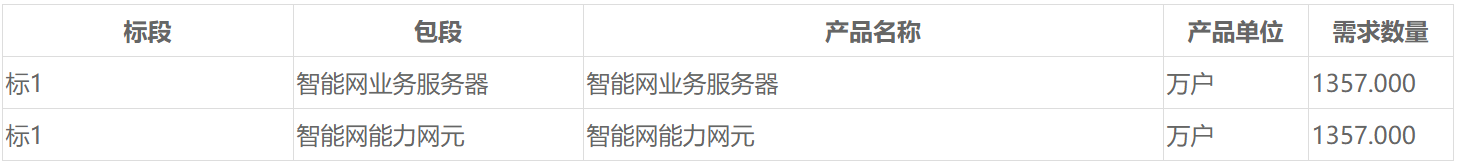 此次招标分为:智能网业务服务器和智能网能力网元两个标包。其中,标包一:智能网业务服务器最高限价为不含税1534万元;标包二:智能网能力网元最高限价为不含税1023万元。投标人投标报价高于最高投标限价的,其投标将被否决。