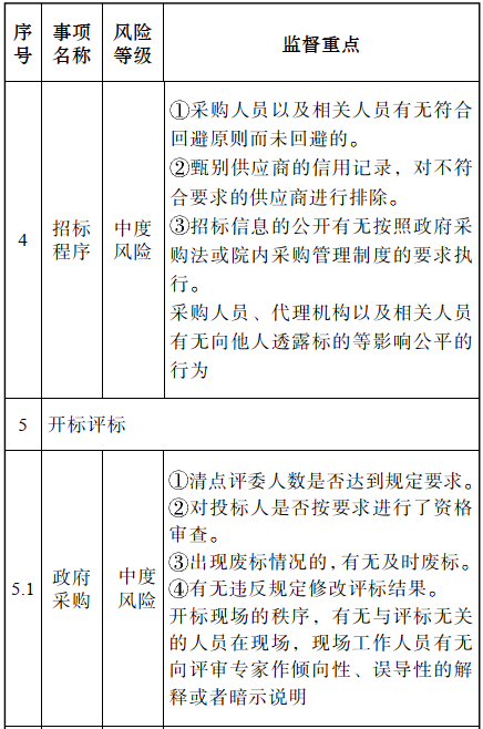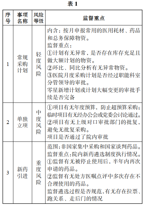 审核项目是否有必要开展,是所有采购的前提条件,这个环节的风险等级高;应针对不同的事项设定监督重点,具体详见表1。