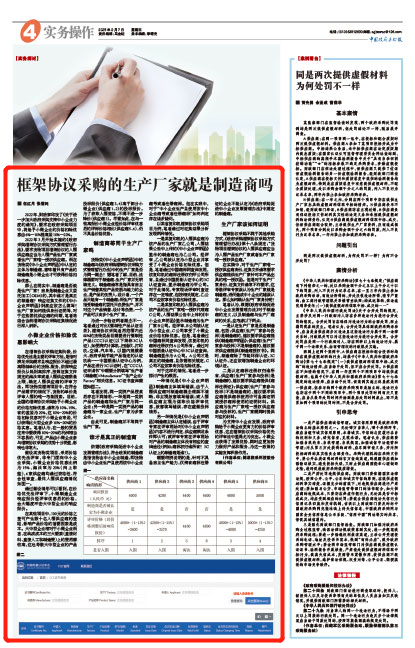 《中国政府采购报》刊发我司“框架协议采购的生产厂家就是制造商吗”一文
